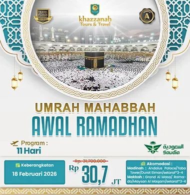 Raih kesempatan menjalankan ibadah umroh 10 hari terakhir dapatkan keberkahan malam lailatul qadar Ramadhan 2026 di mesjidil haram bersama Khazzanah Tours. Paket komprehensif selama 15 hari ini dirancang khusus untuk memberikan pahaala terbesar dan pengalaman spiritual maksimal, termasuk pilihan berangkat di waktu